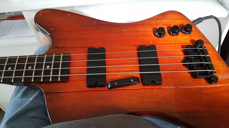 I don't have the big thumping MM style humbuckers in this bass.....just the little blackout style Chinese pickups.