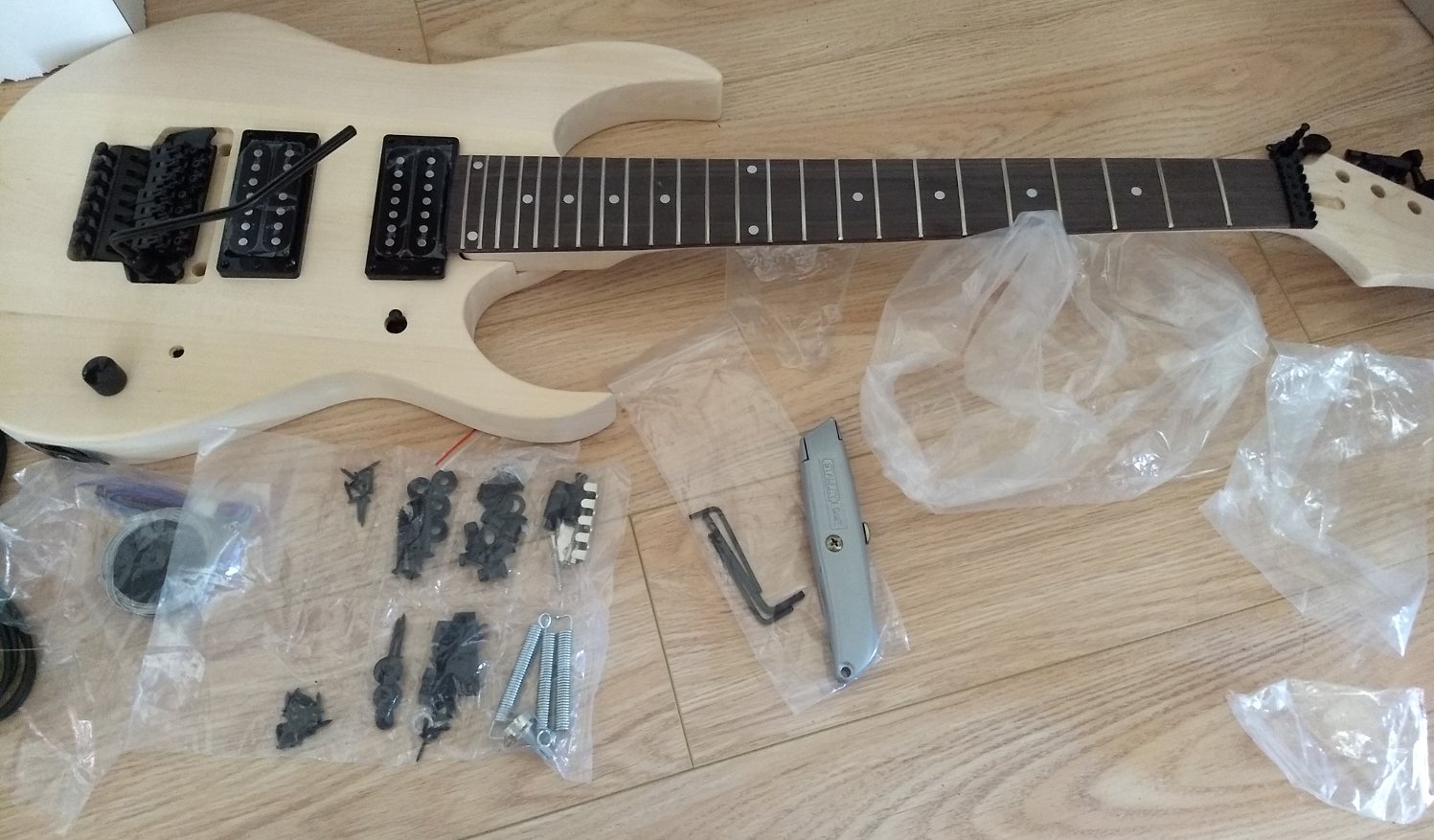 Kit delivered today! Did a dry build just then. Neck, pickups, tuning pegs all seem to fit well.