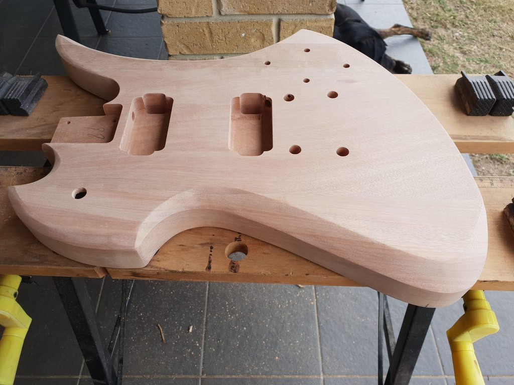 I have spent the day sanding and giving it a grain fill with ebony timbermate. I am wanting to enhance the grain in the mahogany hence the use of the darker ebony. It appears to have darkened it up nicely.