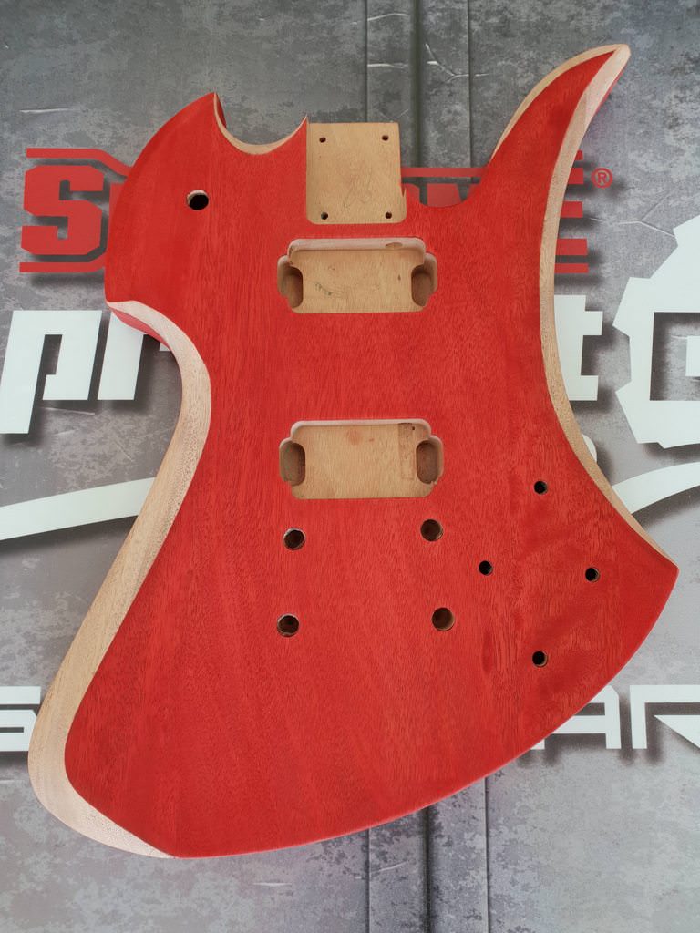 Here it is in it's original form. I am planning on a dark red finish with black hardware. I got the black Grover 406c tuners, now looking at other hardware to add to it.