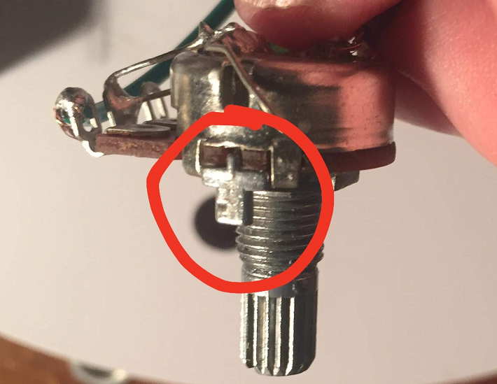 Im looking for a little assistance; im putting together a Rickenbacker Kit and i have done all the wiring, ready to mount the controls onto the scratch plate (as is the case with RBs) ... my issue is this; the pots dont sit flush on the back side of the plate - there is a small "dag" that sets the threaded shaft off center when i apply the nut to the front - this means that the nut never seats properly and the whole thing ends up not sitting straight. Is this normal? should i be looking for another "piece" that i should be installing. Cutting the "Dag" seems out of the question - it is quite thick and doesnt bend - my guess is "leave it alone" ... Any ideas? Pic attached