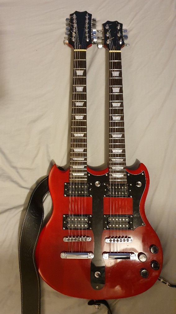 SGD-612 double neck SG finished in wudtone amaranthine. All parts stock