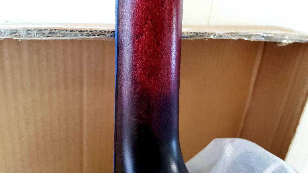 So I thought, having read other tips, that I'd give it a little sand before I put the 2nd coat of matte Cabothane on the neck of my guitar. Well, it took the colour out. It was the finest paper I had. I tried re-staining but there is now a defined line between colours.
