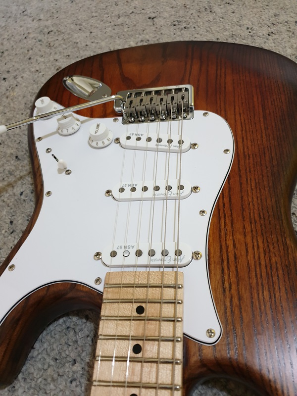 The pickup rings and truss rod cover are home made.