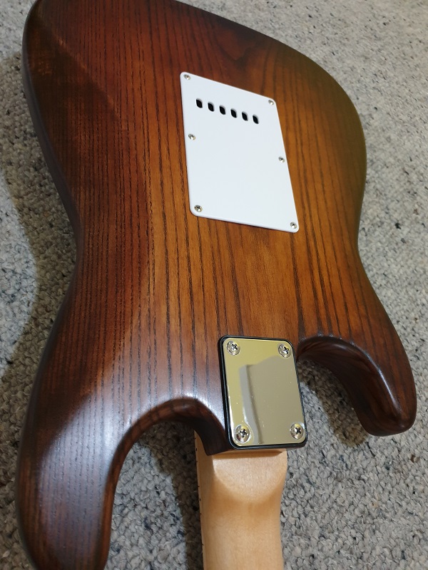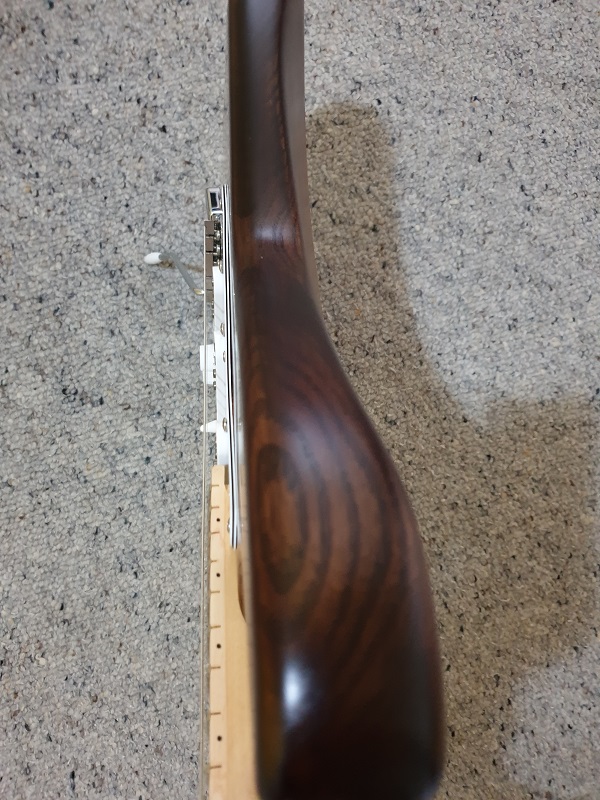 Back of neck and face of headstock finished with a number of coats of Carnauba Polish and buffed a lot.