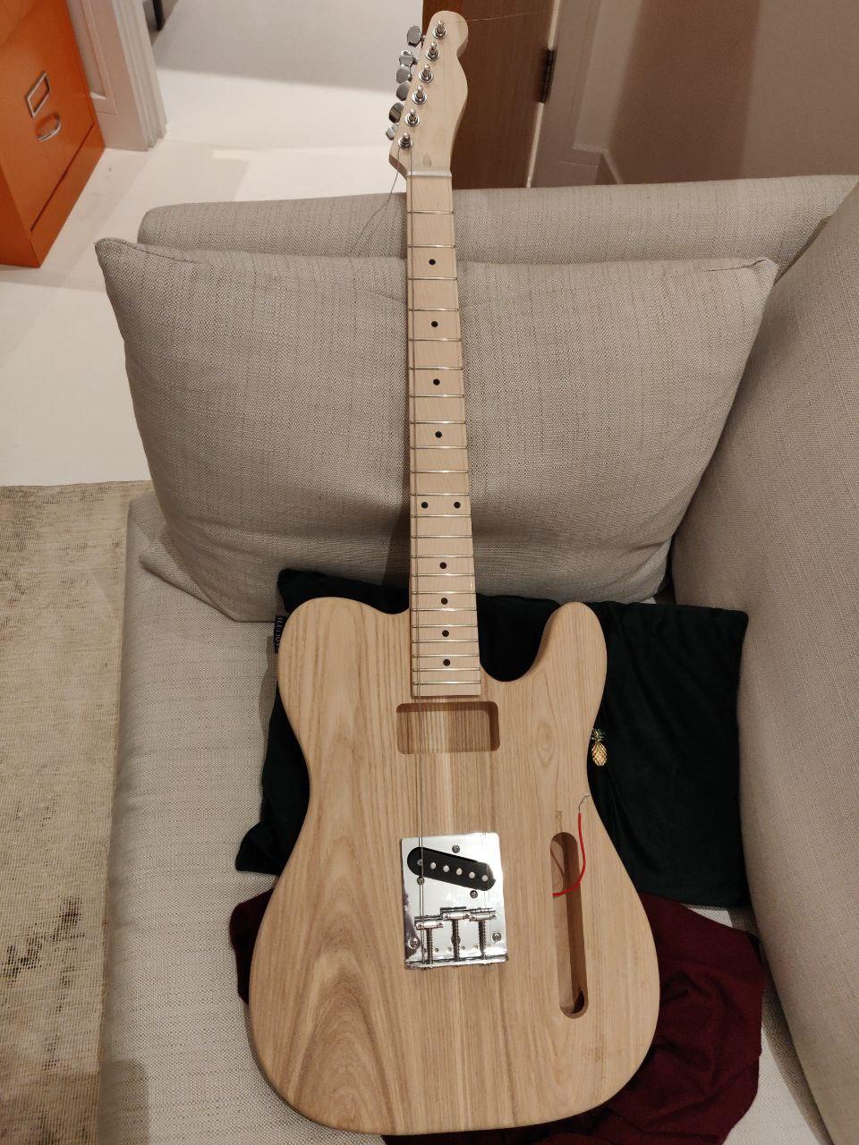 Next, I thought about what might block applying the finish. The holes for the neck and the bridge are all pre-drilled. There are two possibilities: