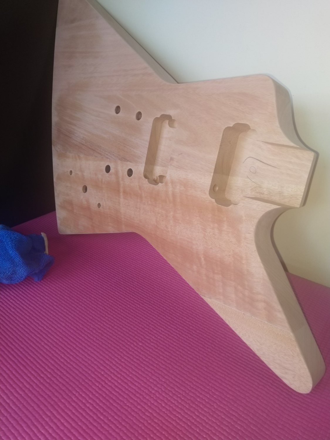 As for the neck, being maple it should feel pretty smooth straight out of the box and again maybe a bit of 80 if you feel the need to dig in for any reshaping otherwise 120 should be all you need to use and possibly a feather light run over with 180.