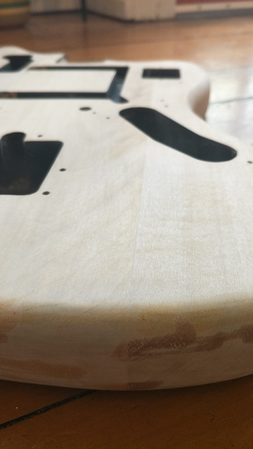 If it doesn't, then just attack it with much coarser sandpaper or even a file/rasp. You should only need to take 1mm off at most to get to bare wood, and you can do that without ruining the general outline/shape of the body. Then go up through the sandpaper grades, making sure that each finer grade has removed the scratches left by the previous grade before moving up to the next grade.