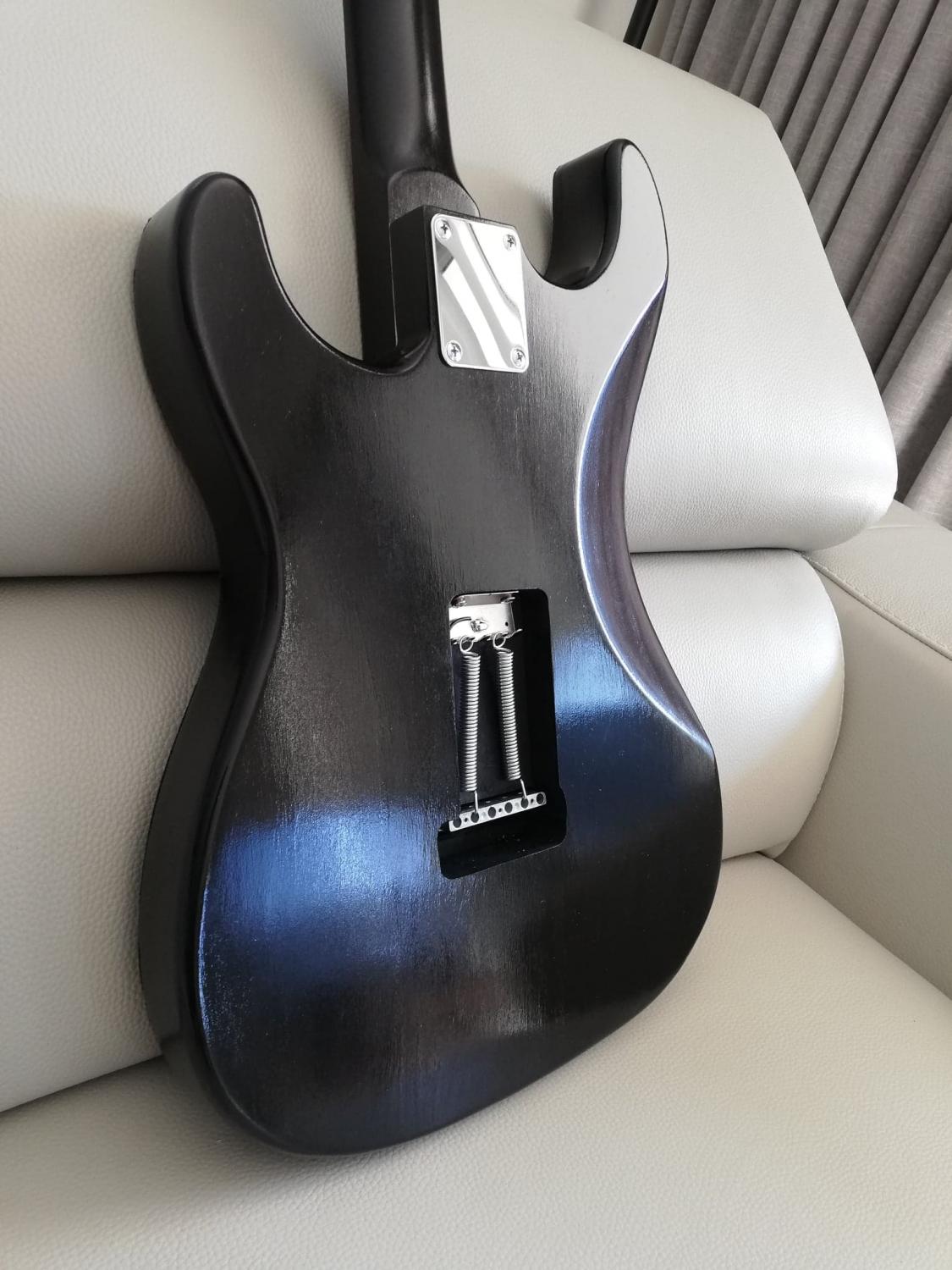 Kit neck and fretwork is great (with a little elbow grease), action is 0.2mm at 1st fret and 0.5mm at 12th fret, super-smooth super-fast and no dreaded fret buzz.