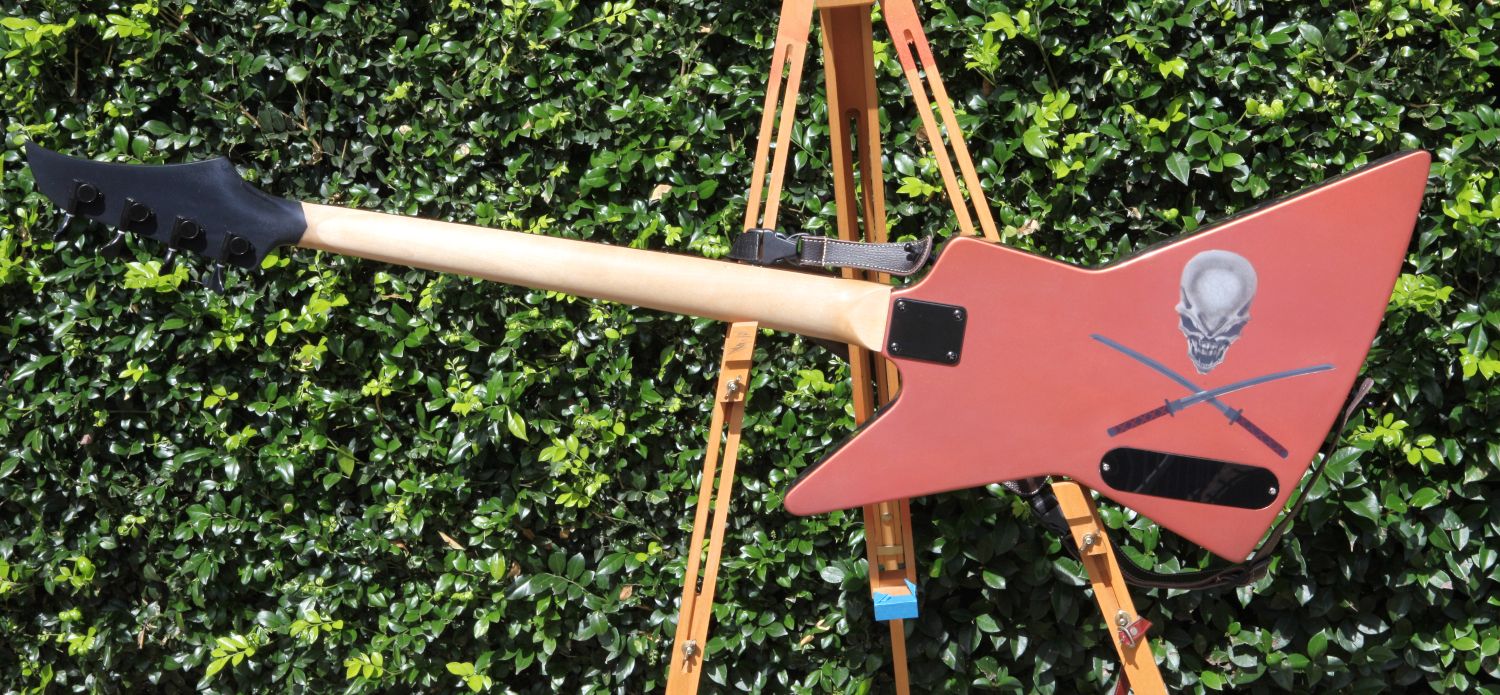 Unfortunately, the pain only got worse . Lets see... the body is Basswood, which is only one step up from Paulownia. There are a couple of minor dings on edges. In addition, base coat is very fragile. It cot scraped a few times, both the base, and the primordial graphics. I tried to touch up with the air brush, but the colour from the same paint came out lighter, it was just too obvious . This mean that any touch ups had to be done with the mini gun, with the extra paint consumption and cleaning that goes along with that.I also had bleed issues underneath some tape ups a couple of times, so more back masking and touch ups. I managed to stop the bleed issue part way through the second time by spraying some clear basecoat first to fill in any creep spots and stop any colour from going in there. It's been a case of two steps forward and one step back just about every step of the way .