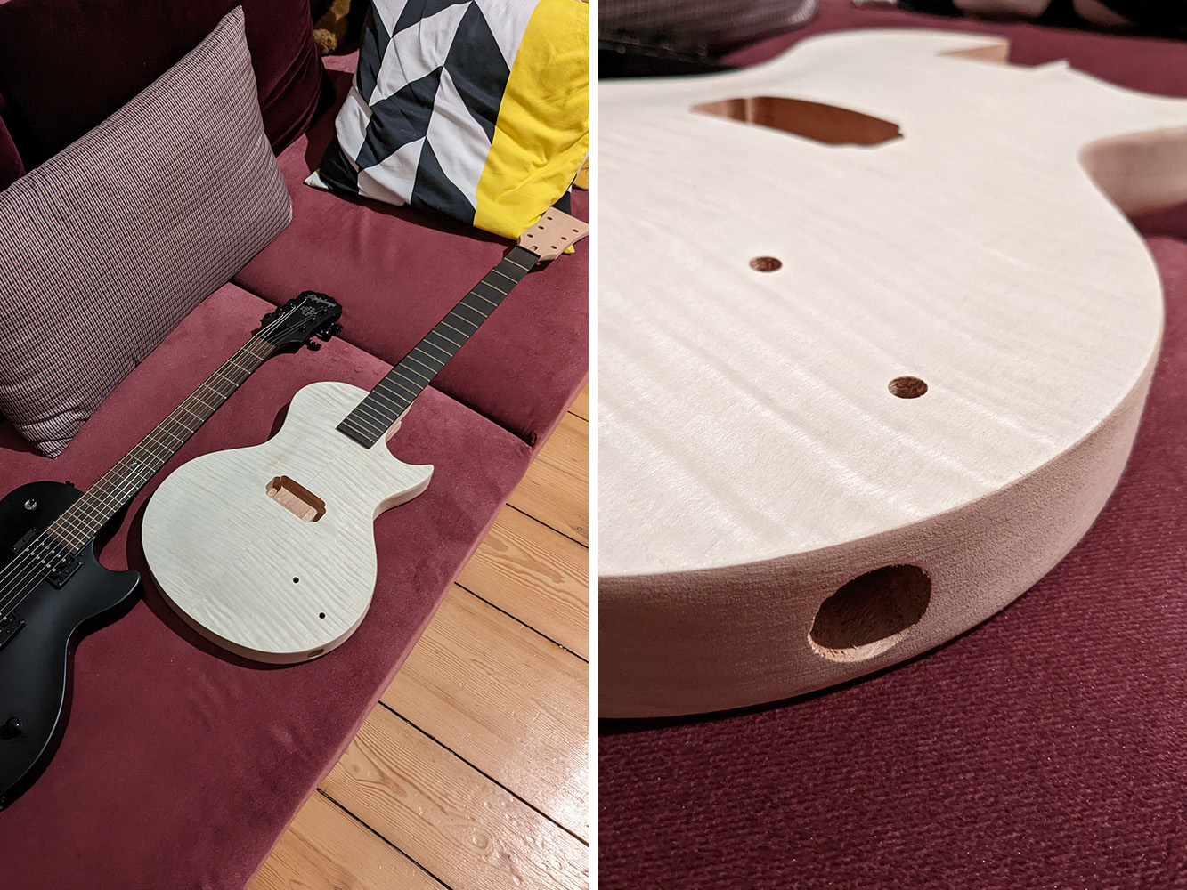 Another build, that I really desired to do is a single cut, one humbucker, les paul kind of style guitar. Inspired by the ESP Ltd Black Metal line, but wanted to color the guitar black with visible wood structure....
