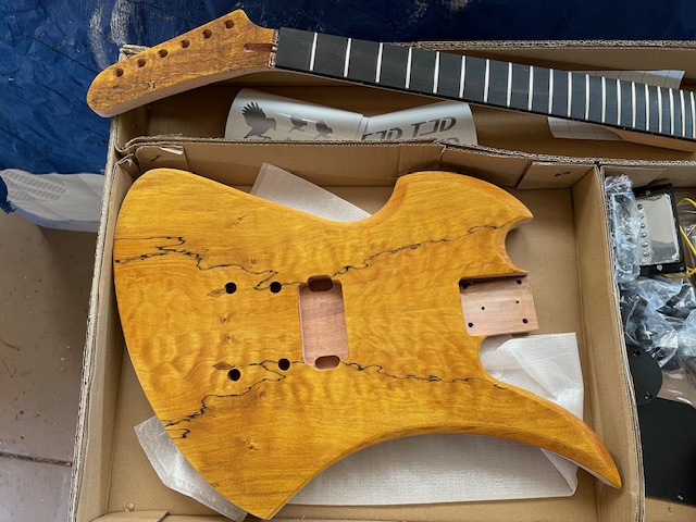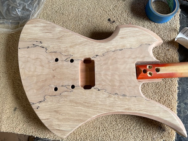 The body and neck have been sanded up to 240 g, including deepening the body contours a bit.