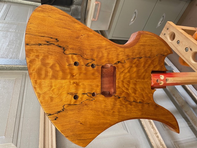 Coated the body and neck with 2 brushed on coats of Wipe-on-poly.