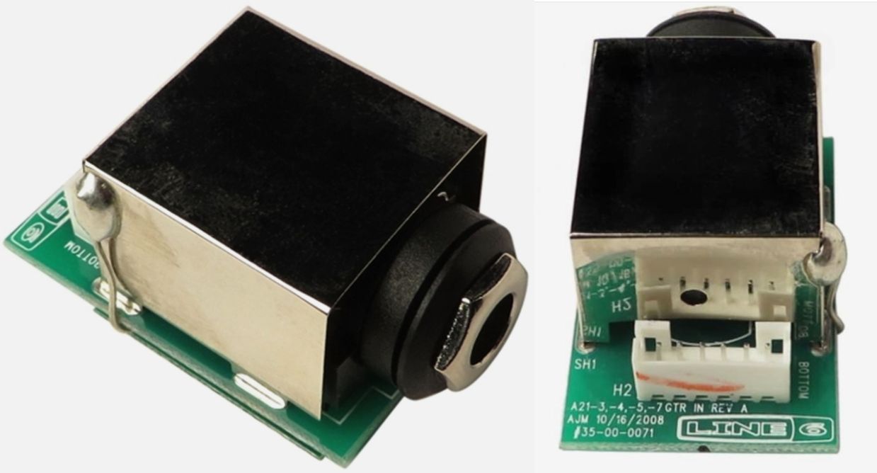 On an old amp, the jack would look a lot like the one on your guitar. Those are relatively easy and straightforward to replace. On an amp made in the last...maybe 20 years?...it's probably mostly on a circuit board, and that includes your Line 6. I googled it, and there may be some variations depending on the time of issue, but I think it will have an input jack that looks a bit like this: