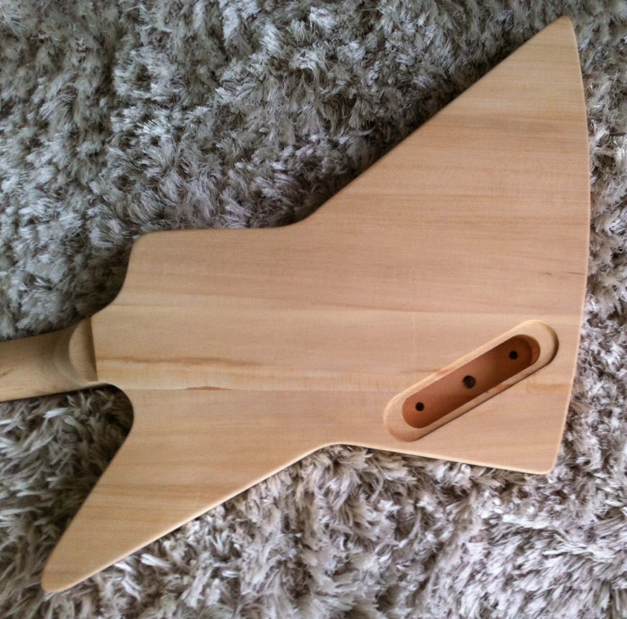 Just a small tip with using the lower grits - whilst good at removing factory machine marks this grade can also leave it's own sanding marks, particularly on the side edges where there is plenty of end grain and had to sand across the edge at 90 degrees to the body before I could the start sanding in the direction of the edge. With plenty of different edges and angles on EX shape this can be quite a challenge. Neck was quite smooth out of the box and will start at 240 on it in a couple of days. Some of pics below show the progress.