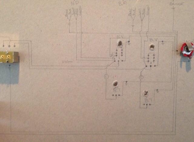 Wiring begins with a scale template of the switch positions, wiring routes drawn and actual hardware installed in heavy card.