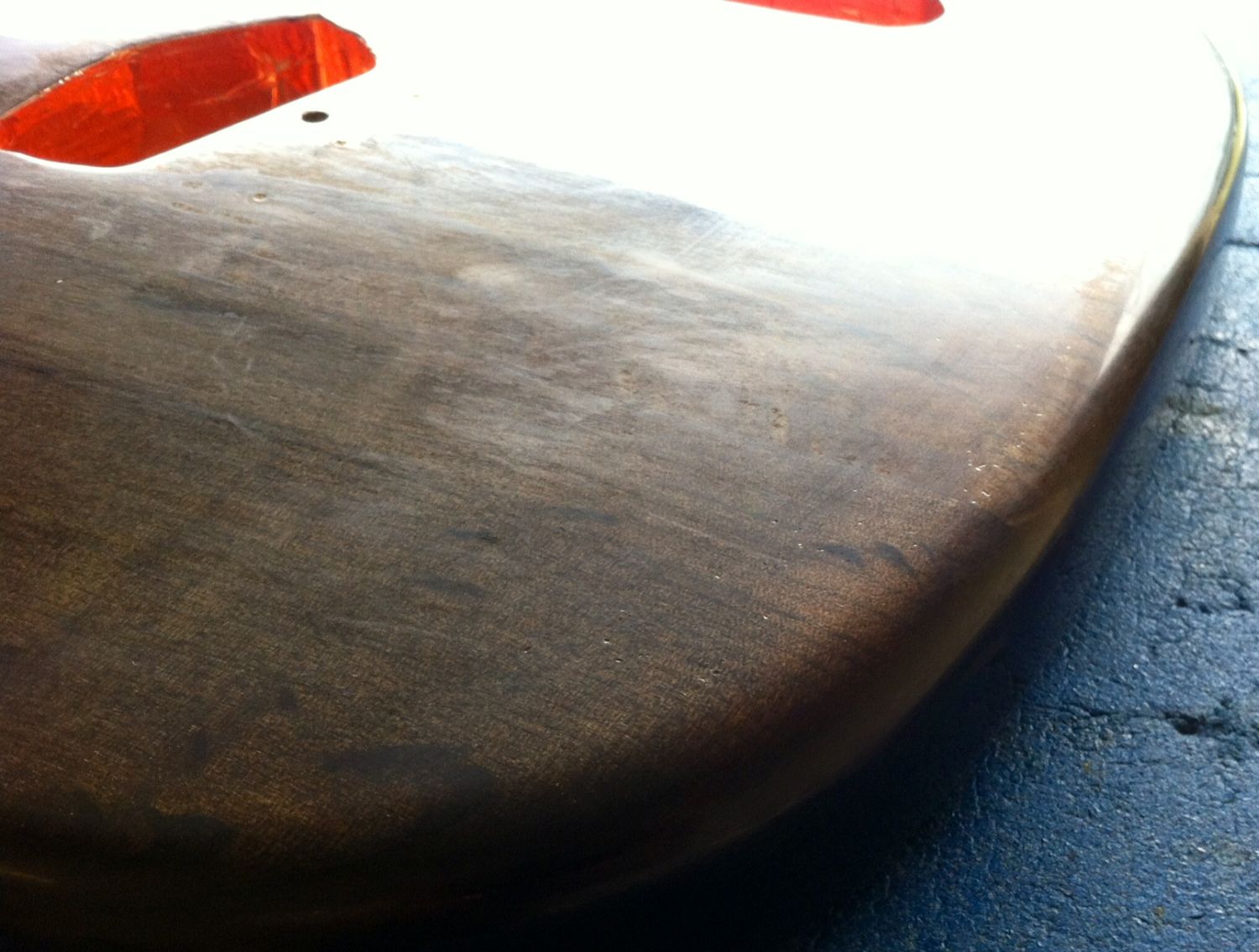 Here are some shots after the wet sanding session. Unfortunately some dings are quite deep and cannot afford to sand any more as it was already starting to hit bare timber and strip some of the chemical wash.