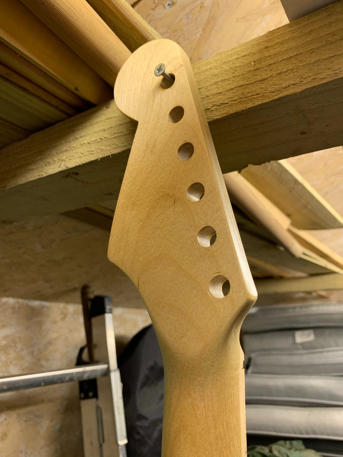 The neck seems to be straight and have a very slight back bow. It fits the pocket snugley but there is a mm or so gap at the front - I think that's okay? There's a slight lip on the south side but from all other angles it seems to be pretty good.