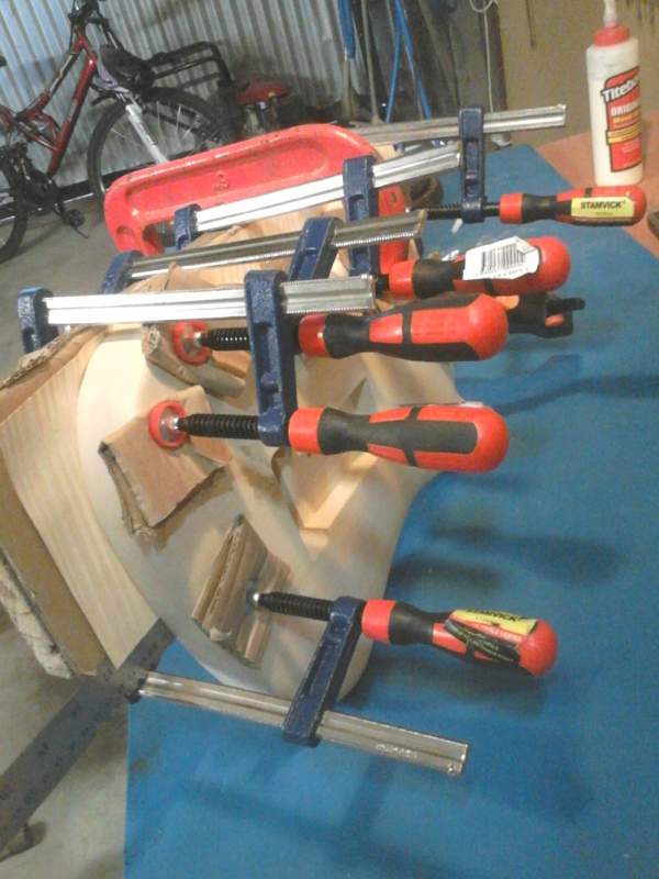 I've decided to do one half at a time, reason being I want to be able to eyeball the joint on the second half to make sure it's butted up perfectly, and eliminate (or at least reduce ) any movement when putting the clamps on.