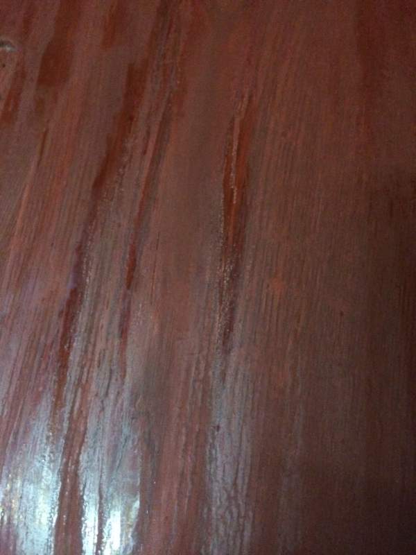 This was applied with a cloth, swipe following the grain, then swipe next to that and so on across the body.