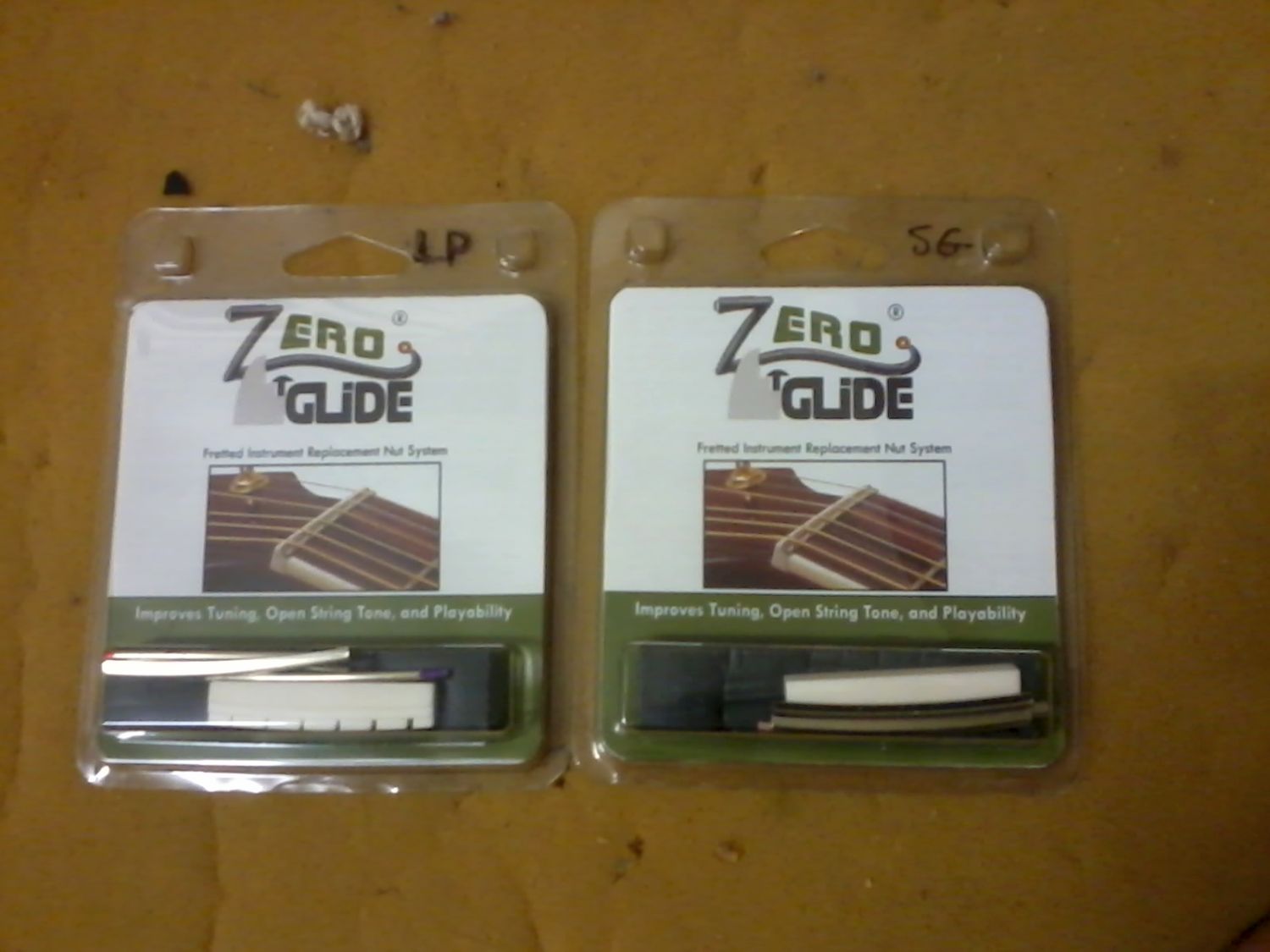 1, Rip out the stock nut which causes the high E-String to buzz like a sitar when tuned to pitch, and replace it with a white Graphtech Tusq XL nut.