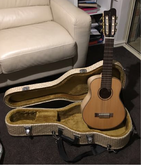 It was out of tune all over the place so I was shortening the strings, filing down the nut, and when I pulled out the bridge, “What is this?”. It’s got a piezo pickup under the bridge. So, a little taste of what’s to come.