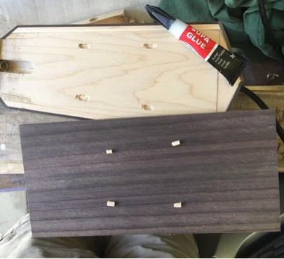 If anyone has glued on a veneer you might of found it can be tricky to clamp it down without it slipping all over the place. As I’m using the full width of the veneer I have no room for error. I’ve routed a hole, sat some maple veneer into the hole sitting just proud of the surface, a drop of super glue on top and sit the rosewood veneer in place. Sand down the maple veneer so the rosewood veneer sits flat.
