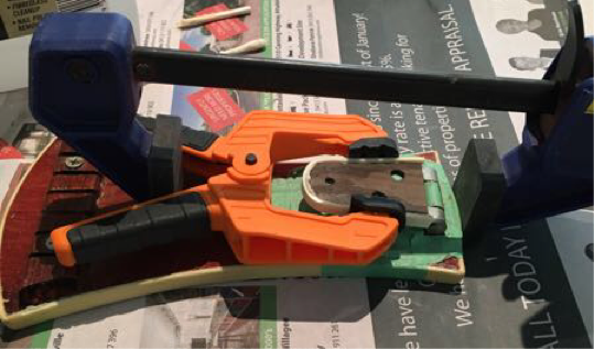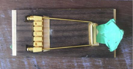 I had a close look at my cheap tailpiece on my Es5v. The metal is starting to bend under the strain of the strings until it is almost touching the body. Now, this is the same style of tailpiece I was modeling my wood cover on. I found these tailpieces made from 3mm zinc alloy. Decision time, stick with the gold or continue the problem plagued plan. I taken a couple of photos to look at and think about for a while.