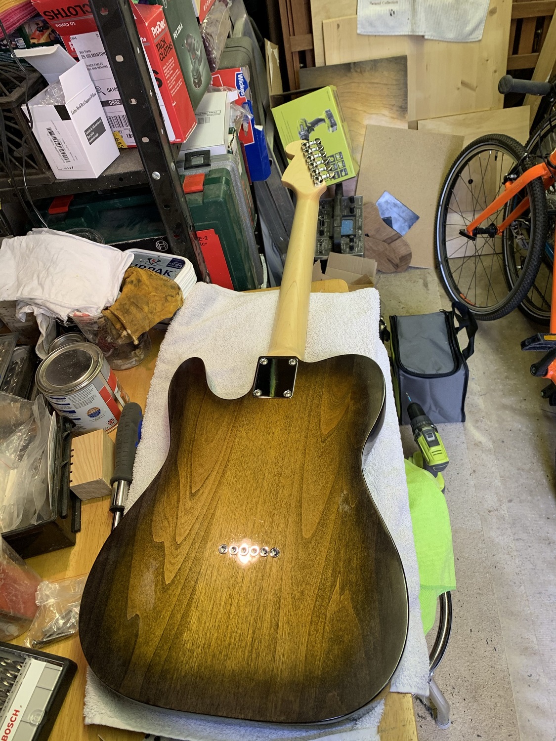 Generally it feels good - the neck as some chunk to it (which I like) and it seems to sustain pretty well. I haven't done the "back the screws off under tension" trick yet. It also passes the "Slow dancing..." test #modernstairway.