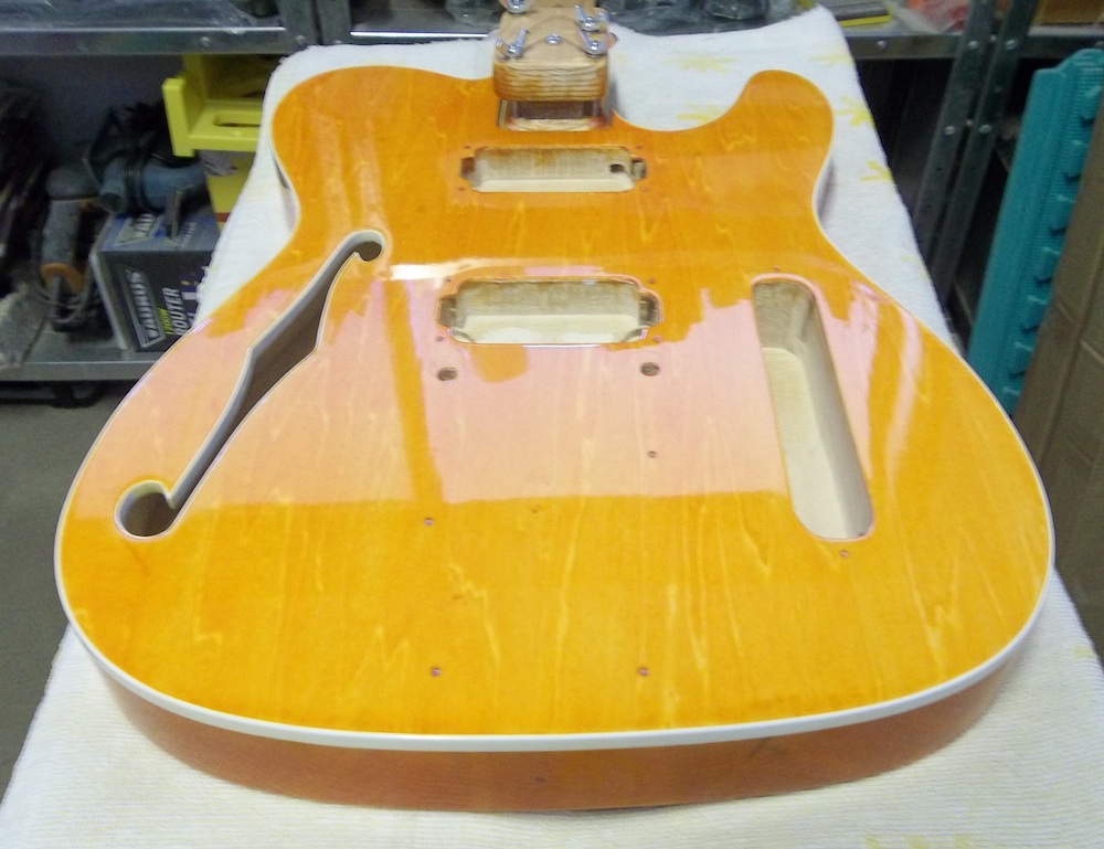 Word of advice: cover the body completely, like I have, if you are ever soldering near/on it like this as tiny solder flecks will splatter under heat and inevitably burn into your finish and/or plastics.