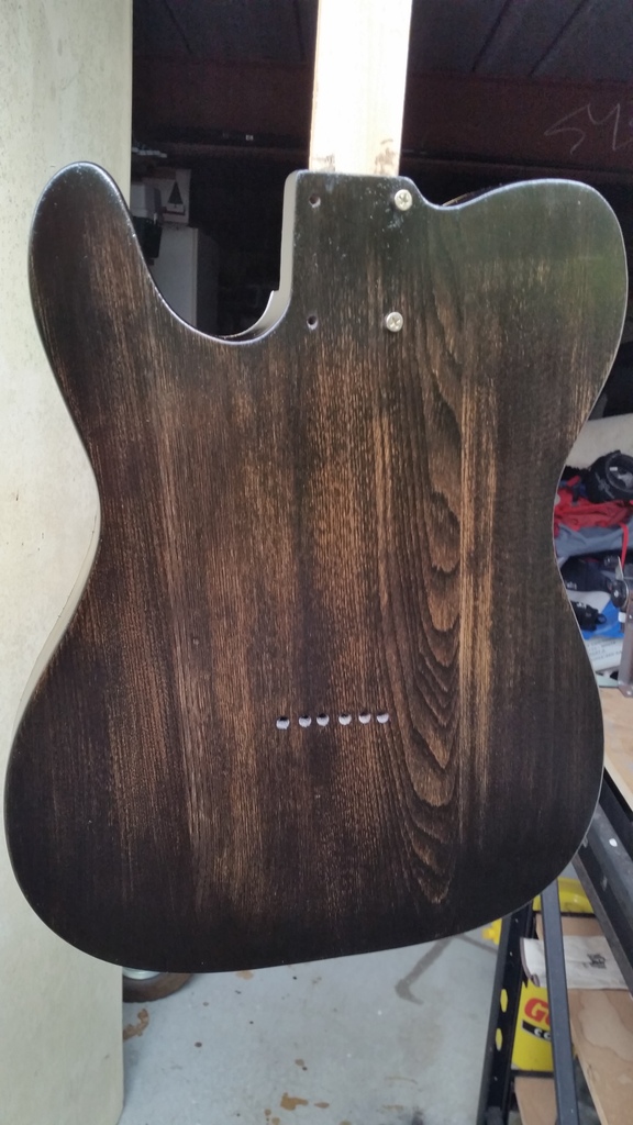 scratch end grain pine tele - first clear coat on !
