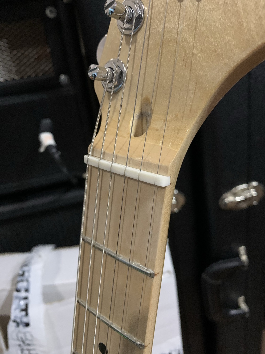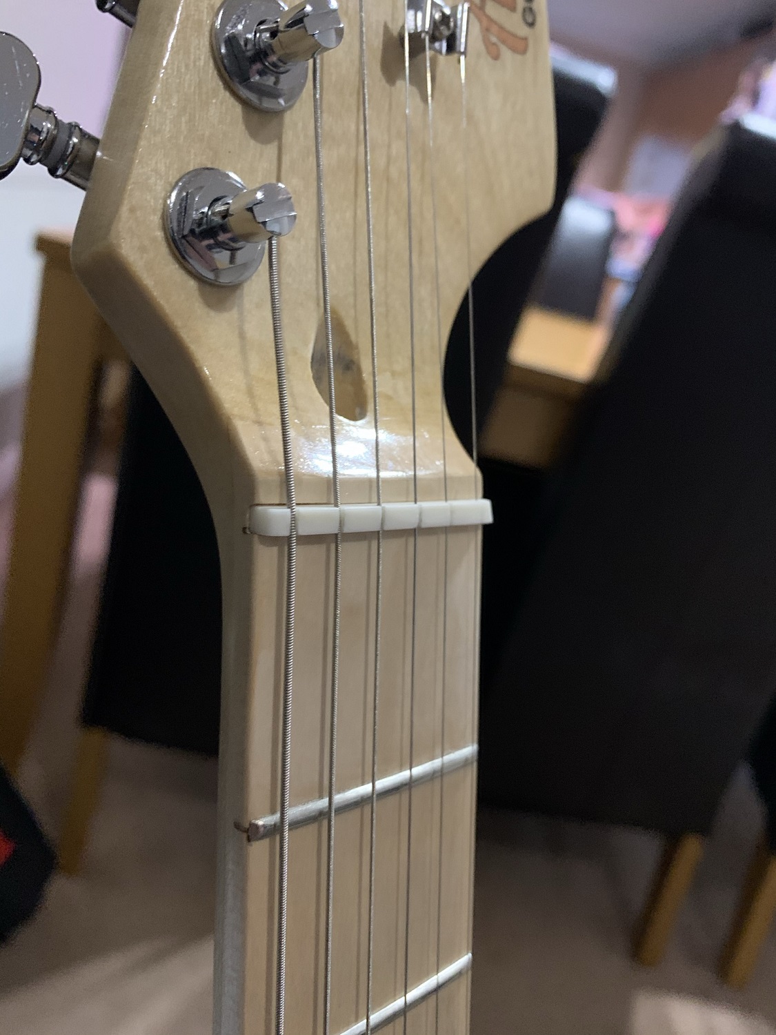 I agree that it’s way off perfect and do plan to refine it or even replace it - probably at the next string change. It’s also a little sharp on the corners and I’m cross with myself for glueing it in about half a mm off centre - careless. But it’s only in with three spots of glue so it should be easy to sort out. It also seems to be functioning okay it least to my ears and fingers. Like I say, I reckon I could get the action lower but with the blanks I have it’s a lot of work to get them even close. Over doing it would be massive pain.