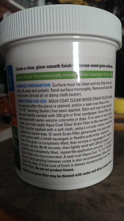 With this guitar i want it to retain all the grain features, cracks, dents and undulations but at the same time look flat and smooth. To do this i looked round for a clear grain filler and found one from America but i got it from an Australian supplier.