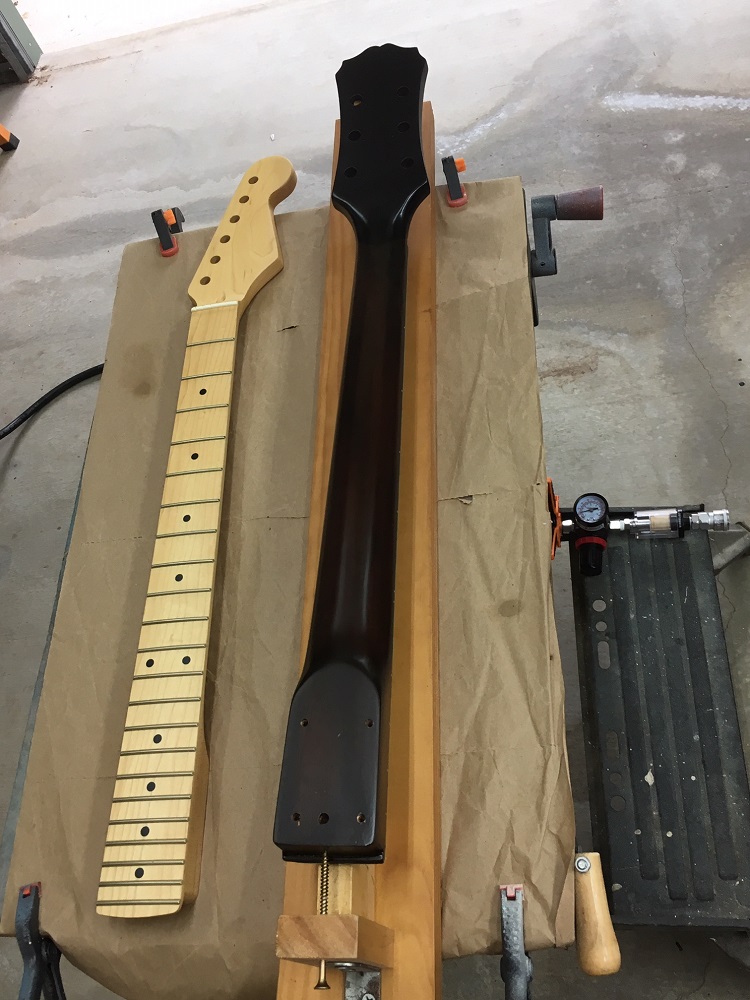 Build #2 is a strat but also with some small deviations. Alder body with maple/maple neck (also finished in satin poly). Rounded plate-less neck join recessed bushings). I'll put in a set of Tonerider Classic Blues but with 7-way switching and Leo Fender's PTB circuit (Passive Treble Bass).