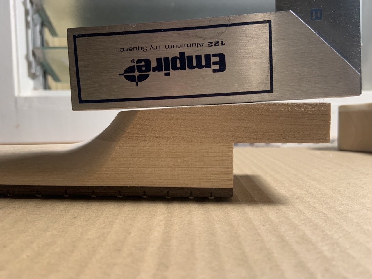 The neck will need a bunch of work - the sides aren't perpendicular to the neck/fingerboard joint and the bass side does sit higher. It's also really roughly sanded so the neck block will get smaller as I finish it, and thus require shims (veneer) to make tight again.