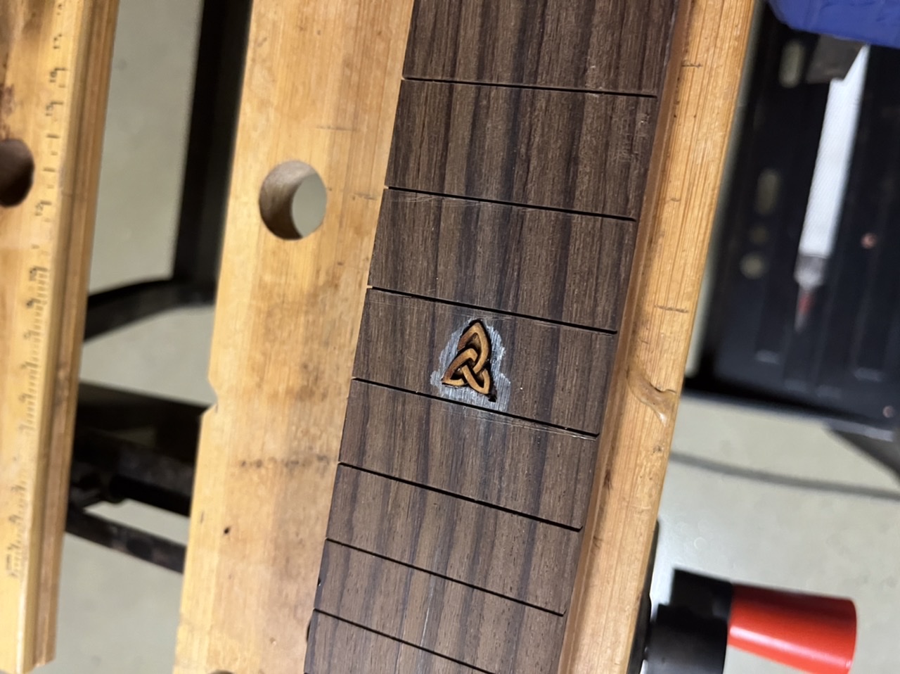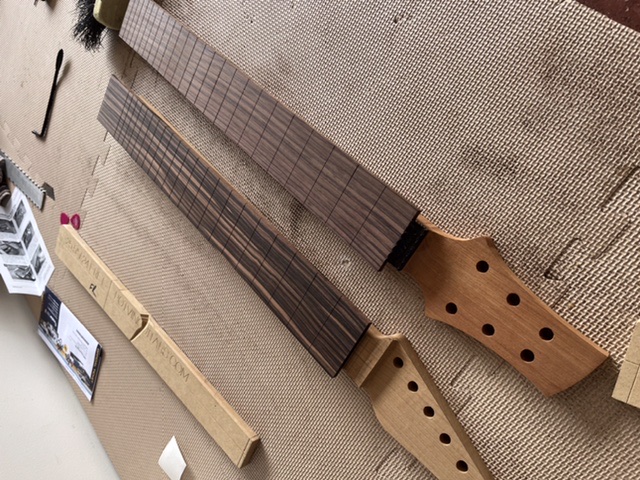 A bit over a year but a bit more progress. Got some png ebony and made a fretboard for this build and another.