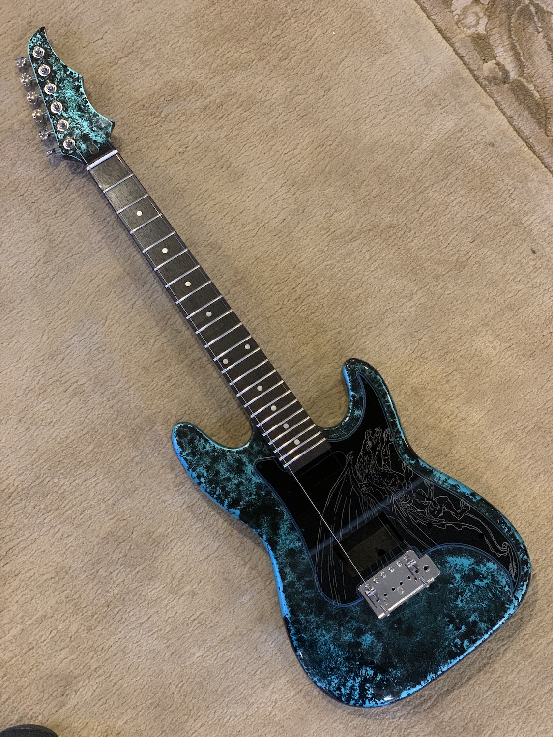 I am so in awe of that pickguard, even in the failing of the first coating. Great work