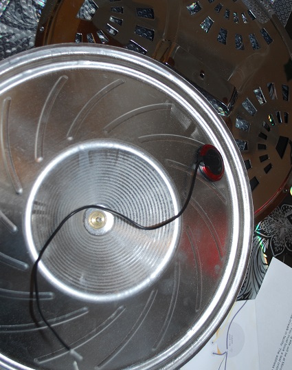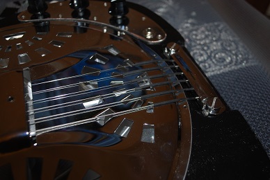 Some good things! the sound is very nice and is loud acoustically even though this is a solid body, incidentally, no sound seems to come out of the grill, all volume is projected from the disc. Backing off the tension screw gives a wonderful acoustic fuzz box sound! With the the tail strings damped, the sound is crystal clear and bright even though I have used relatively light EB 10-46 strings. The intonation will be ok once I get the strings a bit closer at the twelfth fret. It is a heavy b****r but actually seems manageable. The structure seems solid and braced by the back plate and the top disc I think it will be ok. So plenty still to do but moving forward ok