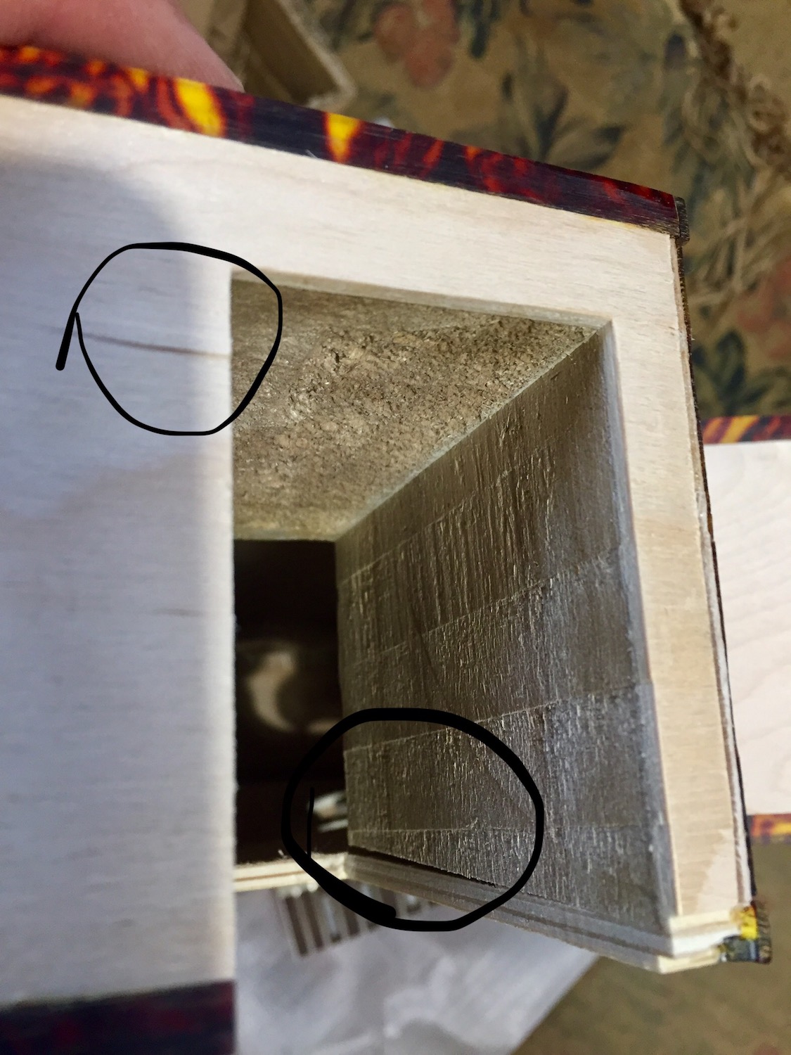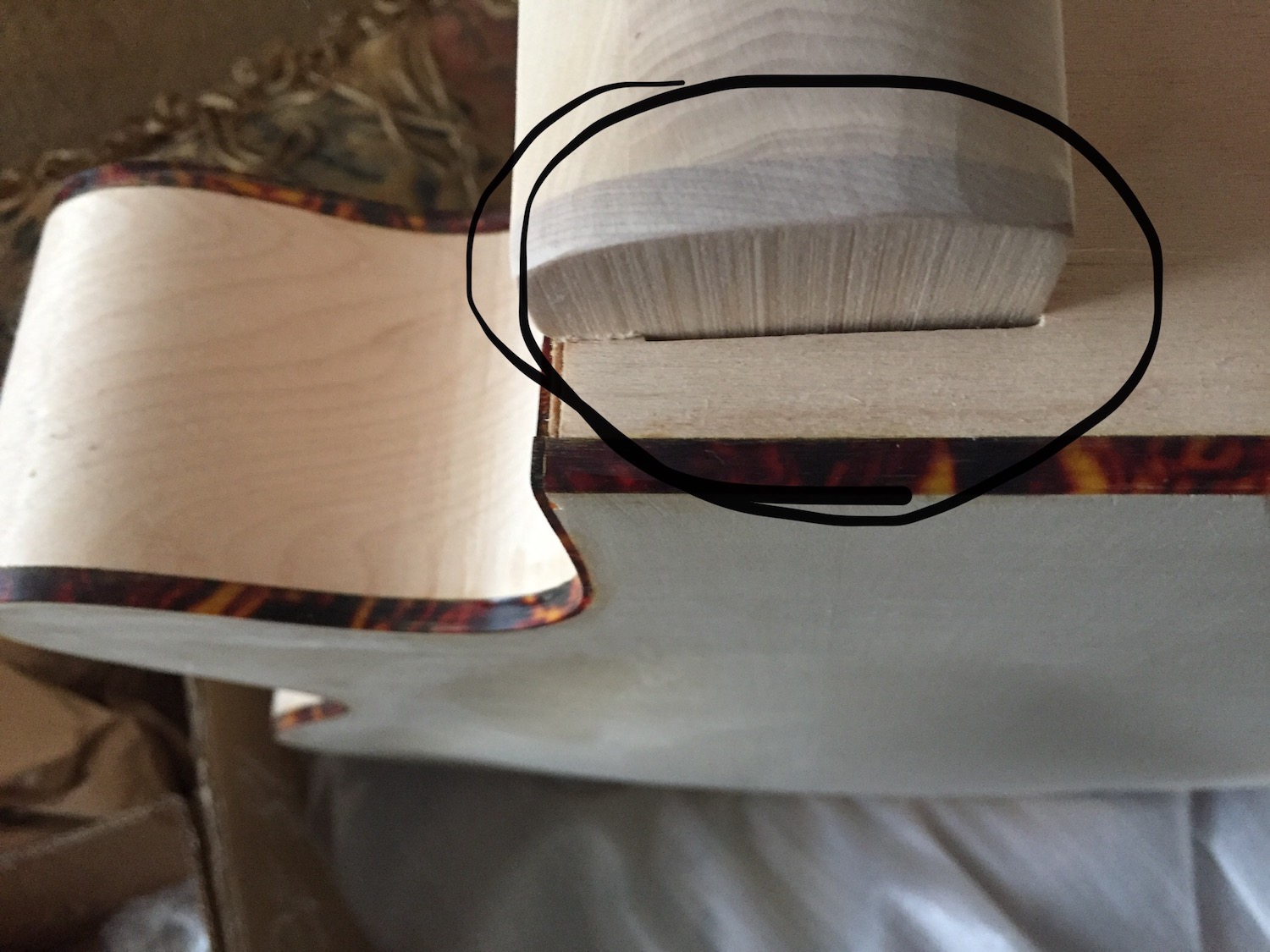 Another view of poor binding alongside neck/body joint, plus the neck block not even joined to top all the way