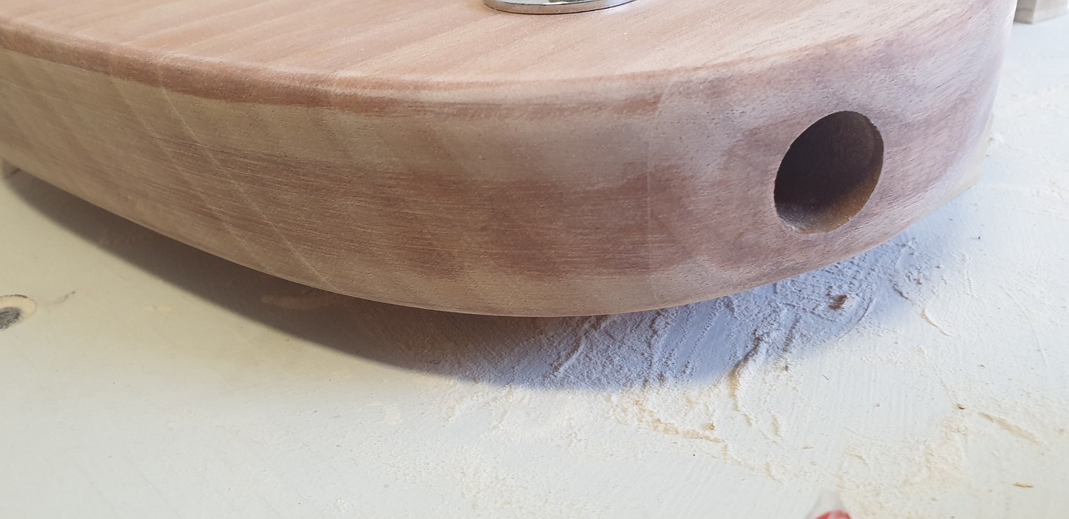A bit of the body is exposed where the bridge pickup will sit so next step will be to rout/sand it back.