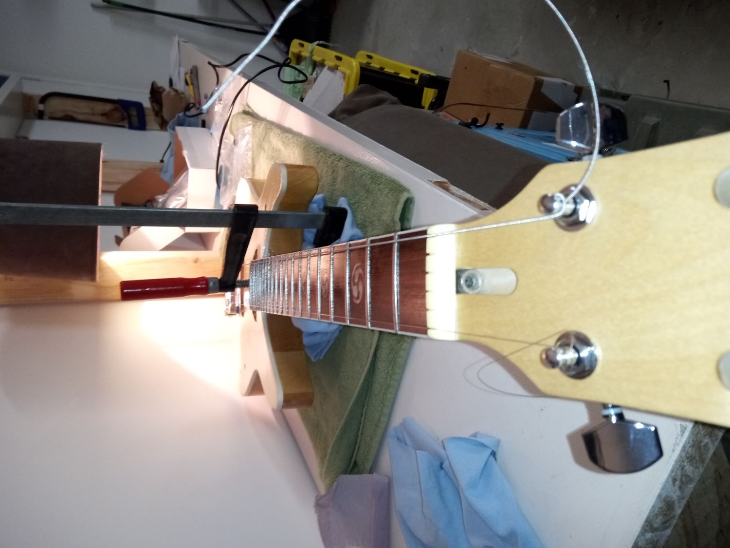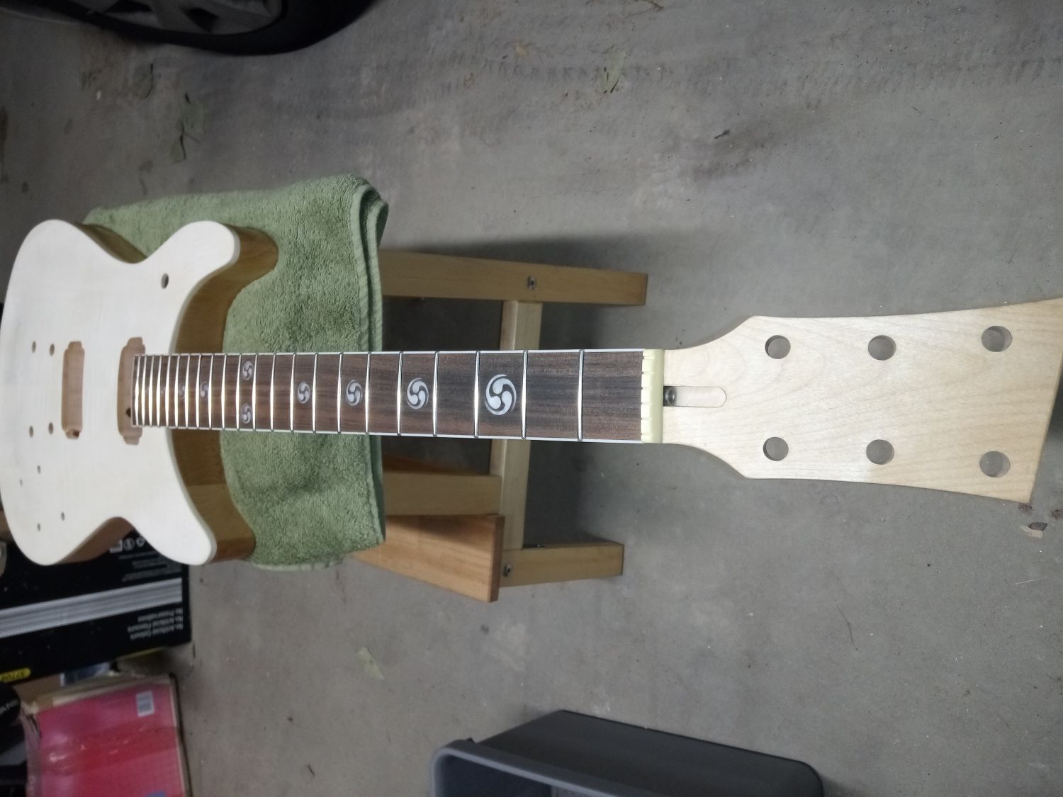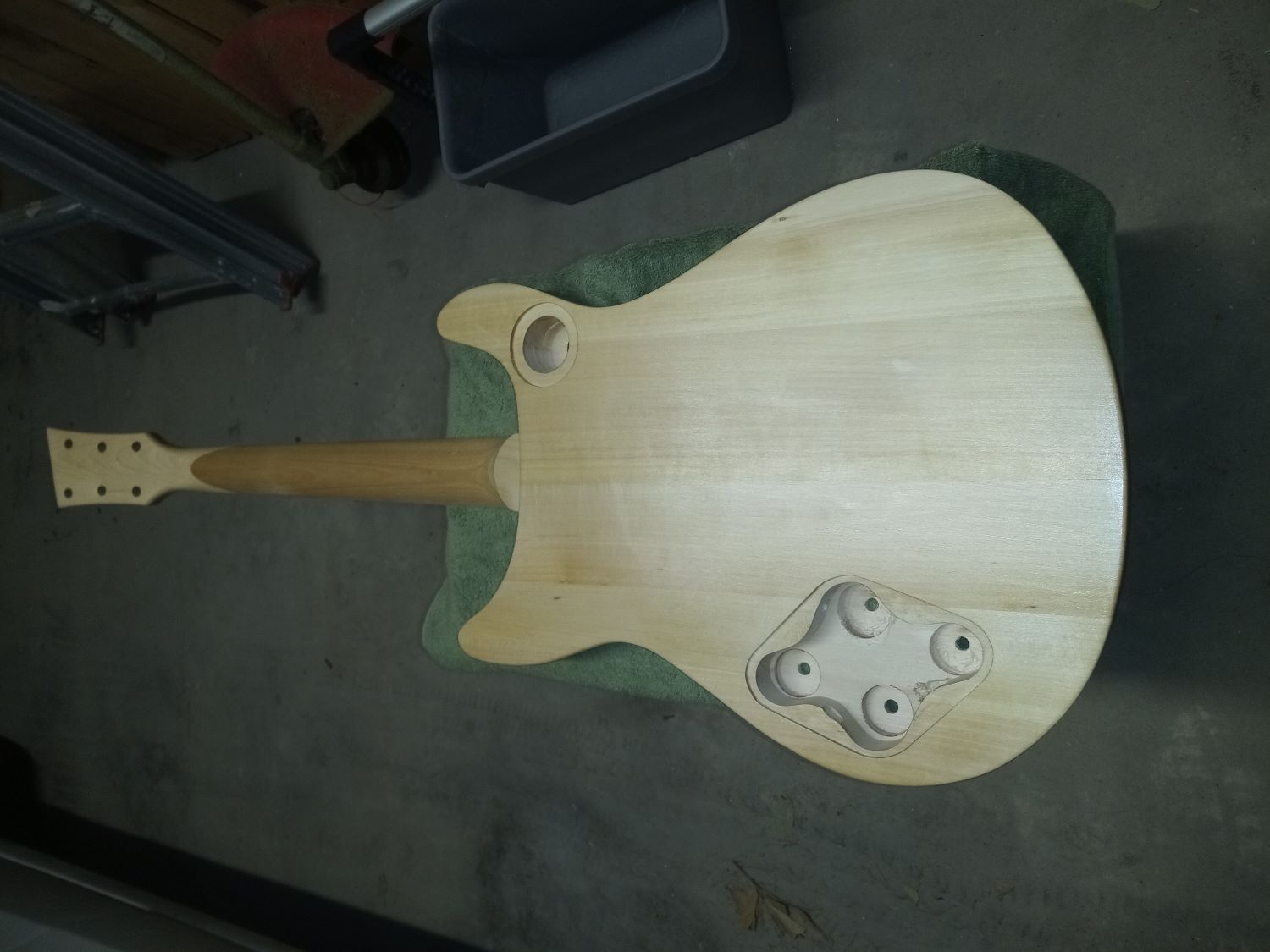 You can lay out the potentiometers through a card template so they are spaced the same as the body holes and then solder all the wires between them, referring to the Pitbull wiring diagram for your kit. That way you don't have to reach into the body cavity with the iron, and you can solder most of the joints before you assemble the instrument