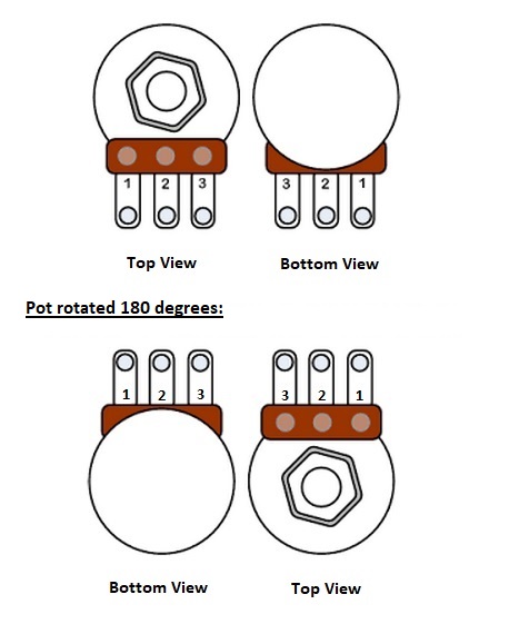Thanks for all the responses again! Now that I understand the wiring diagram better, I will pull out the big dog soldering iron with a bigger tip and clean up those grounds when I fix the order of the leads. I was a little afraid to apply too much heat to the back of the pot as I was afraid of damaging some internals. The dremel tool suggestion sounds good as well.