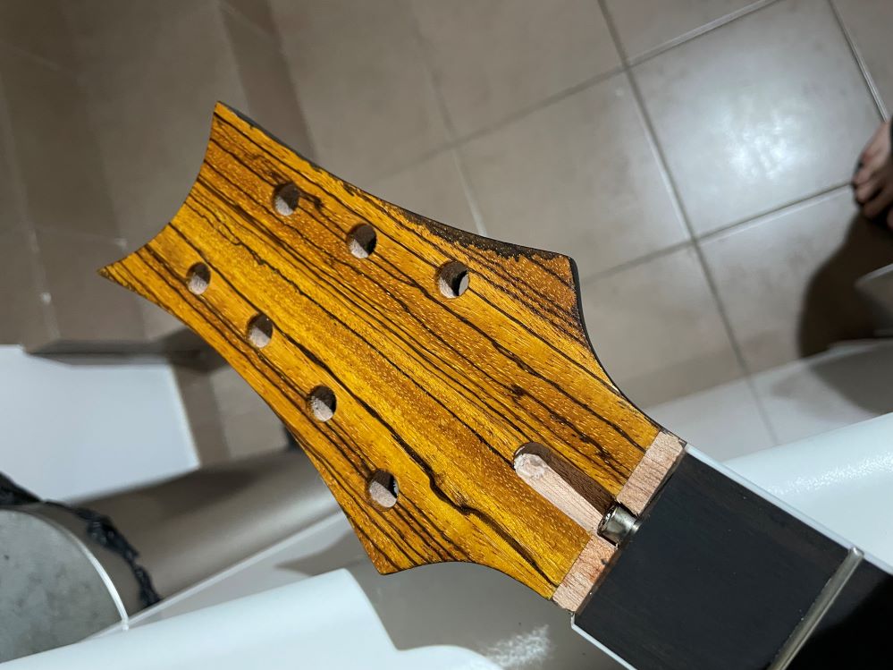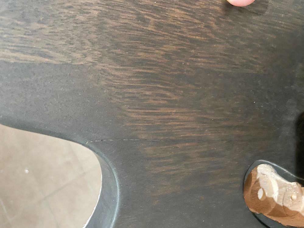 My Keda wood dye finally arrived so after a little time spent tinkering with colours I found something I was happy with and stained the top, which means one step closer to finishing. I still need to put a burst on the headstock to cover up some spots where stain from the sides bled onto the face, and then on to clear coats.