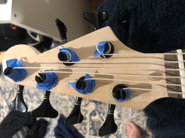 So I've built and unbuilt and rebuilt and re-unbuilt it a few times trying out different things. I drilled holes for the bass tuners and....rushed it. In typical fashion.