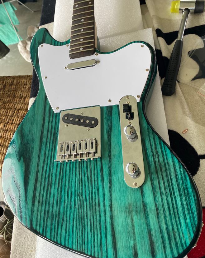 If you’ve got two makes of pickup available, be aware that if you mix them up and fit a bridge pup from make A and a neck pup from make B, there is no guarantee that by using the manufacturers recommended wiring colours as to ground and hot outputs, that the outputs will have the same signal polarity. So in the middle position, you may find the sound thin and nasal-sounding. This can be cured by swapping the ‘hot’ and ‘ground’ wires round on one of the pickups. However, with Tele pickups, the neck pickup cover needs to be grounded and if the bridge pickup has a metal base plate, then this also needs to be grounded. So on whichever pickup you decide to swap the connections over, either the cover or plate needs to be connected to the other output wire otherwise you’ll have a very noisy pickup.