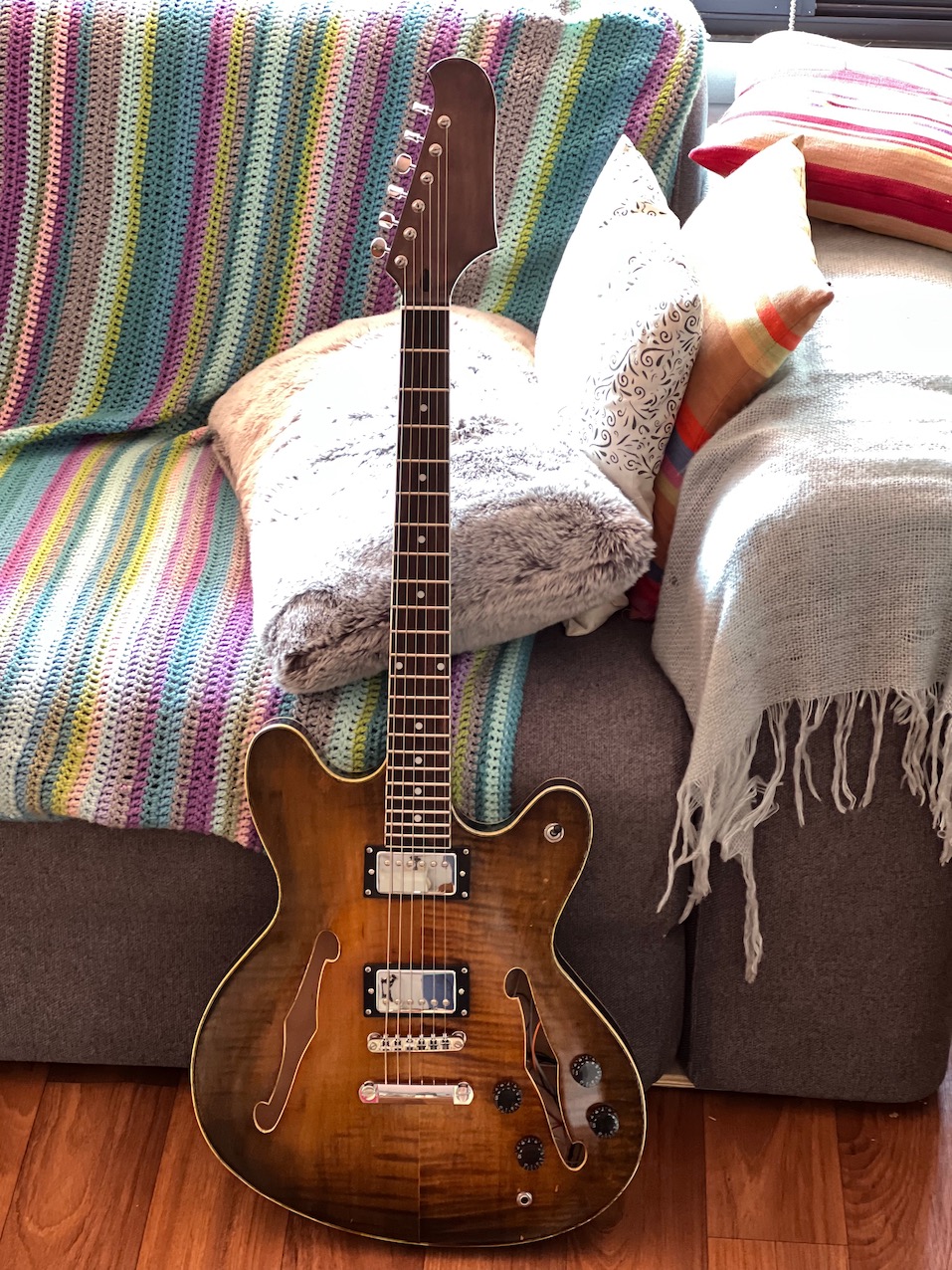 I've got an FS-1 kit, which appears to be based on the Fender Starcaster. Back in the 1990s I had an opportunity to buy an original 1970s Starcaster for just $600. I was a student back then and $600 was more than I could afford. That same guitar sells for a ridiculous amount of money now... so I still can't afford one. But I could afford the kit!