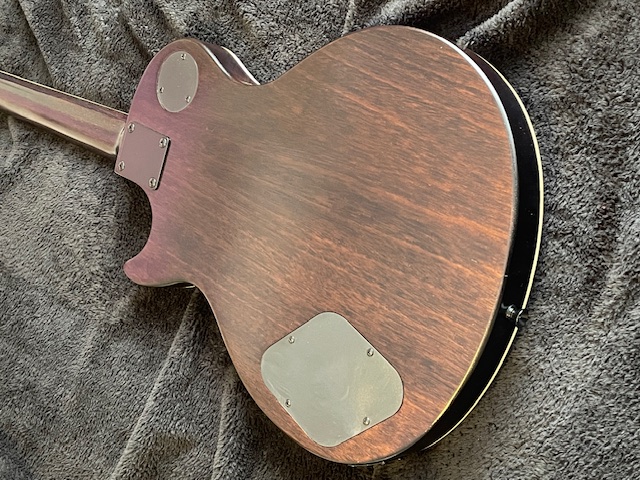This work build is now finished. The body and neck have not been polished. The tuners are Grover locking in black nickel. The logo is 3-ply pearloid pickguard material with a Cricut vinyl sticker. I replaced the all-black and covered kit pickups with open style.