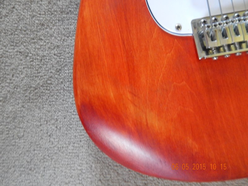 I planned for Wudtone Carmine Gypsy as the finish, a little bit inspired by Mark Knopfler's Strat. This turned out as a massive success, completely stock hardware, very clean finish and something that I am still proud of building.