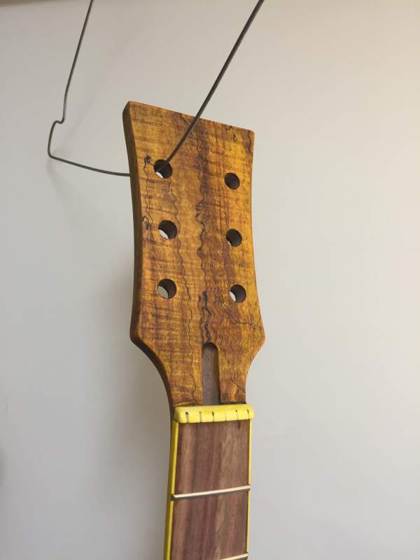 Hey Luke, no worries best you shape the headstock before the staining/clear coats go any further. You will need to sand the top edge that you cut/shape then stain.
