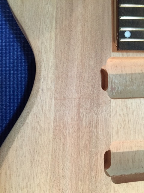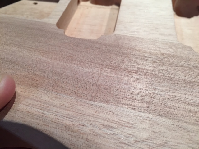 Here are some pics of the crack now (post filler and sanding). How do you all think this would go with a Karijini Red? Would it be significantly visible after staining?